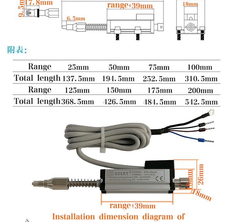 DHL waterproof linear displacement sensor